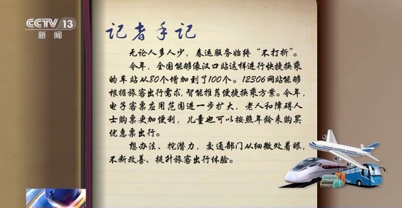 2023年的春运已经开始几天了,我们的记者也在春运一线进行采访报道,不少旅客向我们记者表示,今年铁路、交通、民航等部门在便捷服务方面,做得更细致入微,他们的出行也变得更顺畅了。